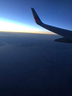 ↓左は四国上空、夕日と瀬戸内海がむっちゃ!綺麗やった