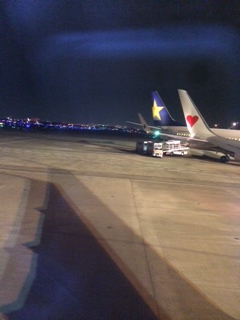 でっ!空港でお土産ば買って、搭乗〜の離陸!