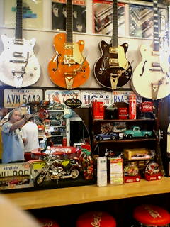 ↓は岐阜のROCK'N ROLL CAFE'!まるでギターショップ!100本くらい、あったね!ほしかったじぇ!!